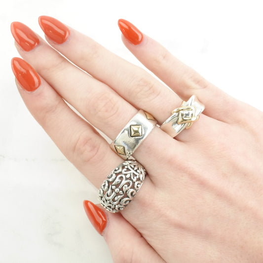 Vintage John Hardy Silver Ring 22K Gold Accent, Palu Square Sterling Size 8 3/4