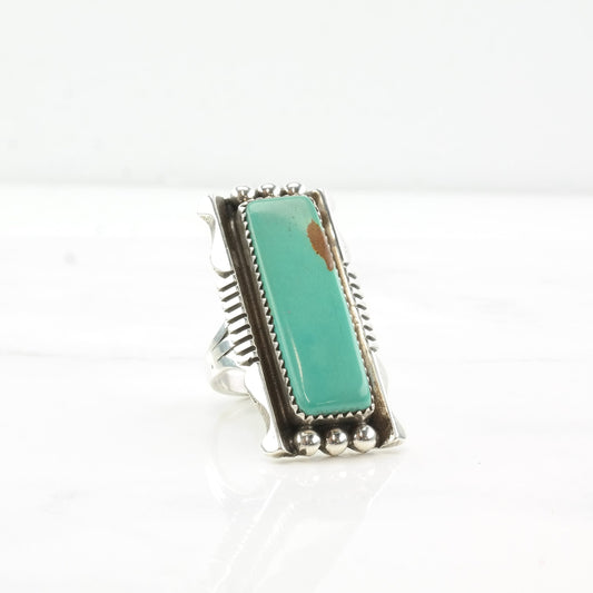 Vintage Sterling Silver Ring Turquoise Rectangular Blue Size 8 3/4