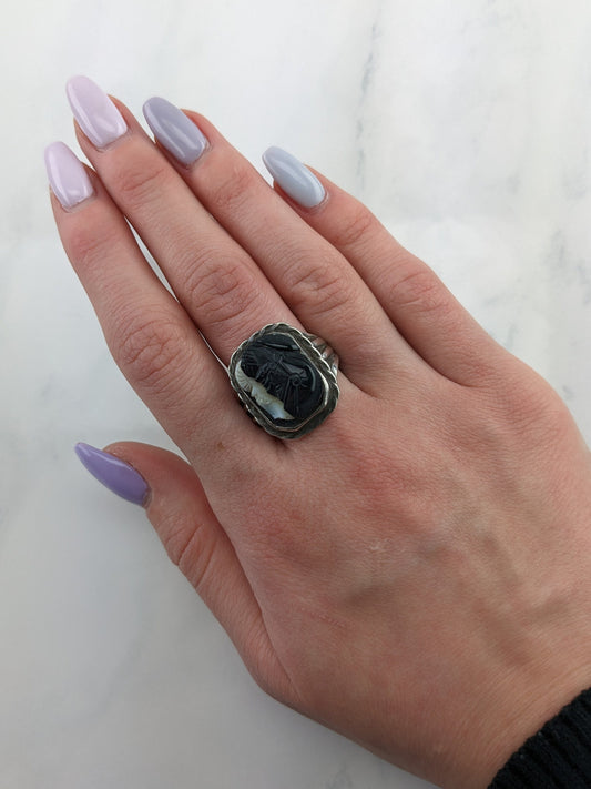 Vintage Victorian Silver Ring Agate Damaged Cameo Sterling Size 8 3/4