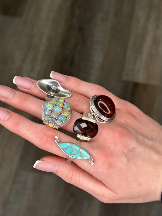Vintage Mexican Silver Ring Quartz Sterling Size 8 1/2