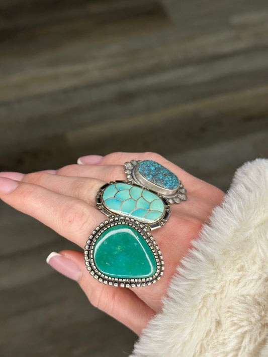 Vintage Native American Turquoise Cluster Ring, Sterling Silver, Size 8 1/2, Circa 1970s