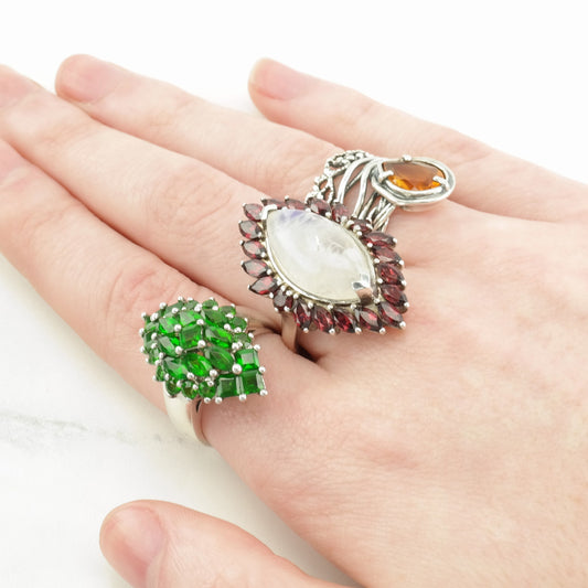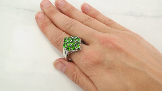 Vintage Sterling Silver Ring Chrome Diopside Cluster Size 9 1/4