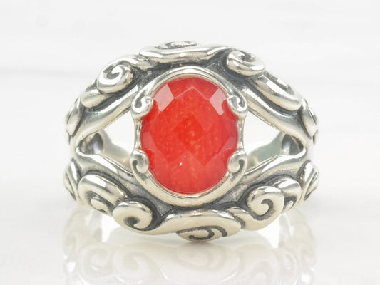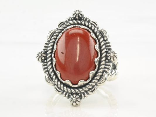 Vintage Native American Silver Ring Coral Floral Sterling Red Size 9 1/4
