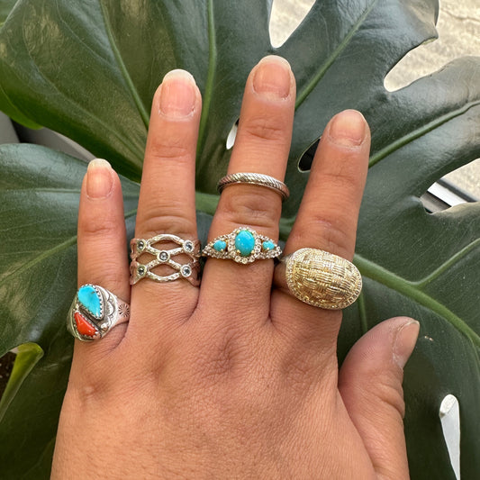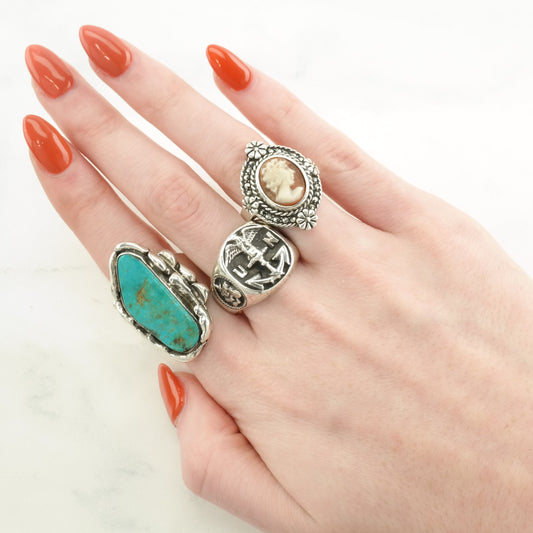 Vintage Navajo Ring Turquoise Large Sterling Silver Size 9 1/4