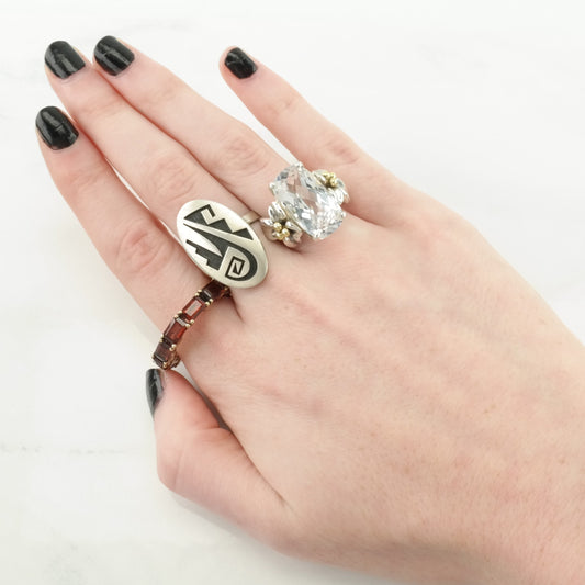 Signed Hopi Silver Ring Overlay Sterling Native American