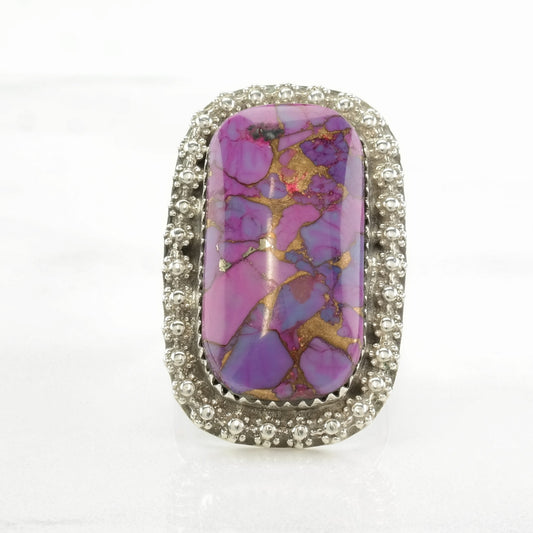 Vintage Southwest Silver Ring Purple Dyed Turquoise Rectangle Sterling Size 9