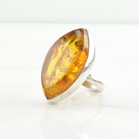 Vintage European Silver Ring Amber Large Sterling Orange Size 9