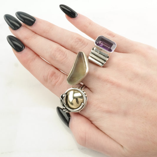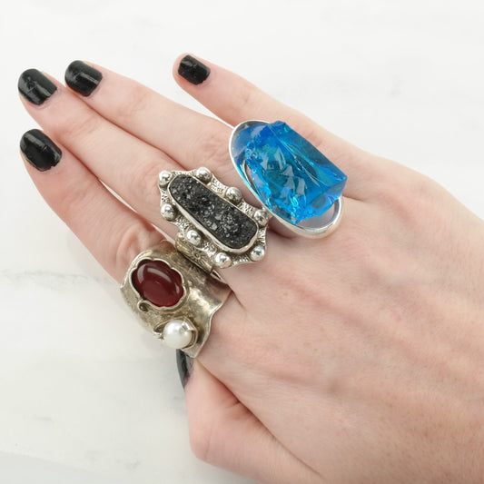 Vintage Buddy Lee Mossman Silver Ring Pearl, Carnelian Brutalist Sterling Size 9 1/4