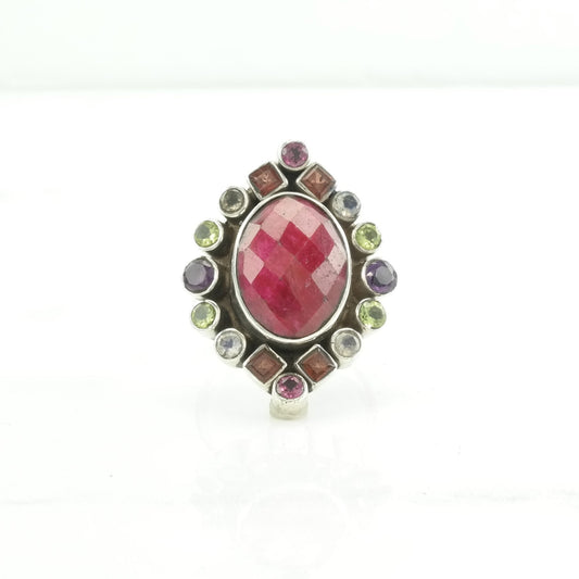 Vintage Nicky Butler SilverRing Ruby Cordundum Peridot, Amethyst, Garnet Sterling Pink Size 9