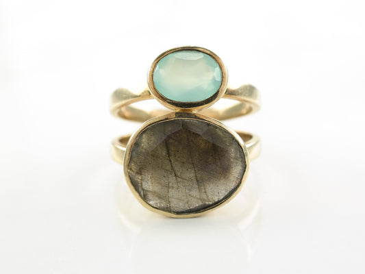Vintage Sterling Silver Ring Labradorite Chrysoprase Gold Plated Size 9 1/4
