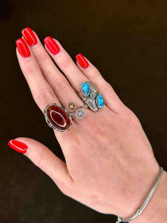 Vintage Navajo Silver Ring Turquoise Leaf Sterling Size 9