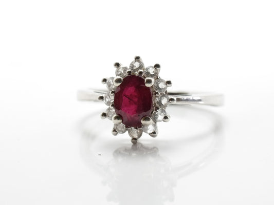 Vintage Sterling Silver Ring Pink Ruby White Topaz Size 9
