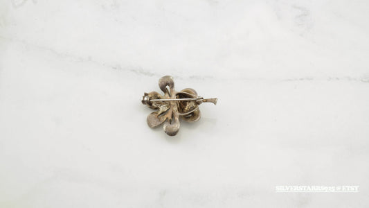 Antique Marcasite Orchid Silver Brooch Sterling B1289