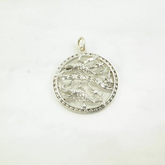 Antique, Art Nouveau Pisces Fish, Zodiac Sterling Silver Pendant P2397