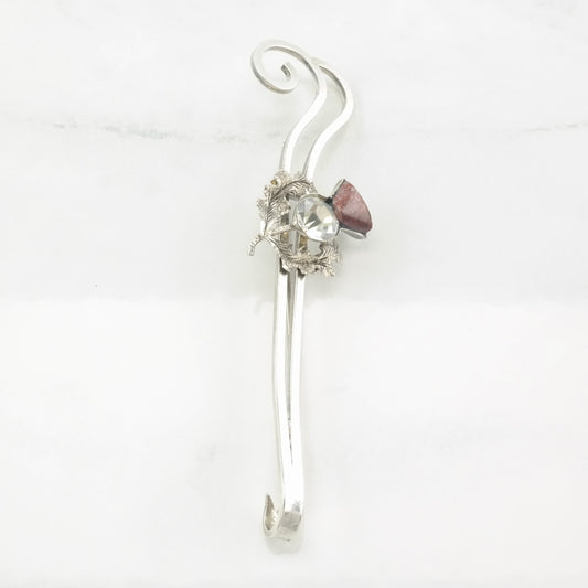 Victorian, Antique Bird, Heart Blue, Green Turquoise, Pink Ruby Brooch Sterling Silver