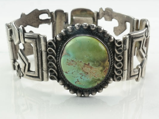 Native American Sterling Silver Line Bracelet Turquoise Figure