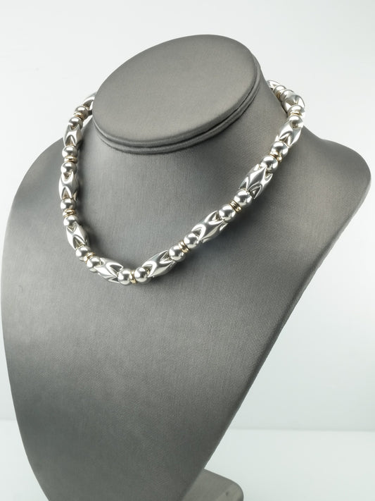Vintage Sterling Silver Silver & Gold Color Gold Fill Bead Necklace