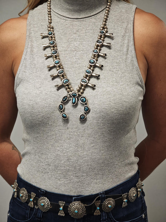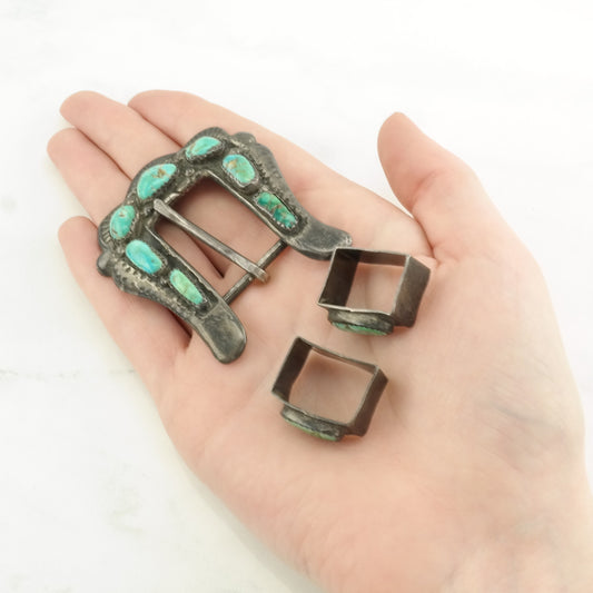Navajo Turquoise Overlay Belt Buckle and Conchos Sterling Silver