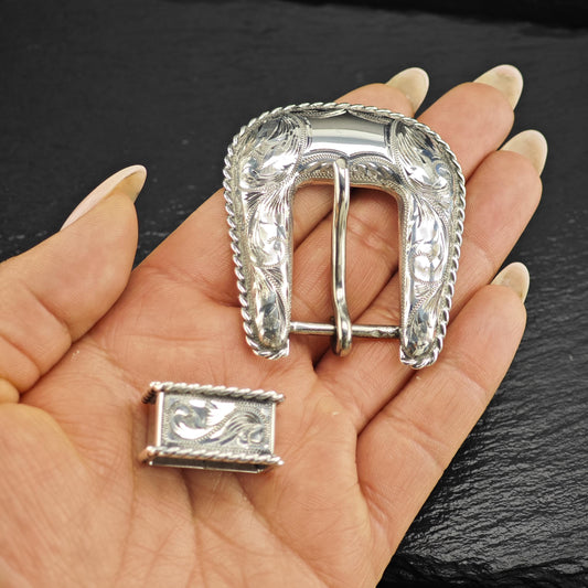 Floral Western Buckle Sterling Silver Ranger Belt Buckle and Notch by Sunset Trails