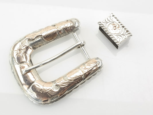 Vintage Floral Western Buckle Sterling Silver, Ranger Belt Buckle and Notch by Sunset Trails