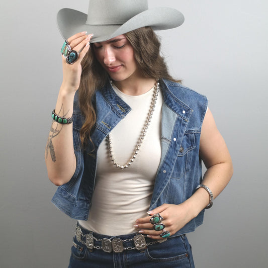 The Native American-made belt is crafted with leather and has an adjustable buckle for a perfect fit. It can be worn with jeans, with skirts or shorts in the summer, or over your jacket in the fall.
