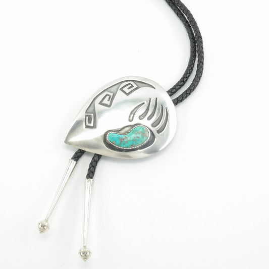 Vintage Navajo Sterling Silver Bolo Tie, Turquoise Bear Paw, Native American Jewelry, Southwestern Style, Mens Bolo Tie, 1970s