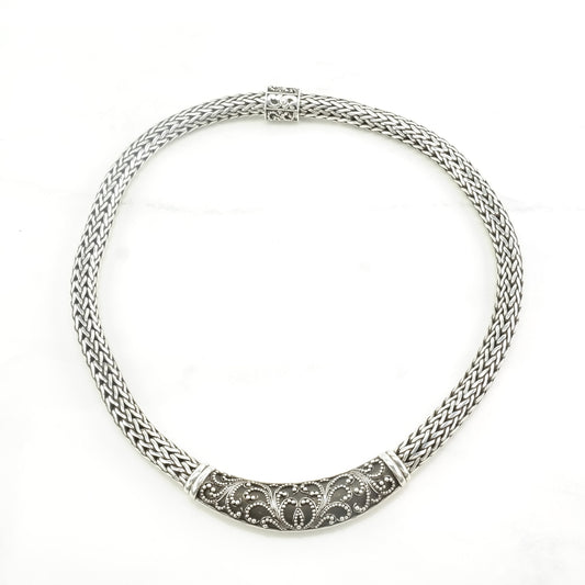 Vintage Lois Hill Sterling Silver Chain Filigree Necklace