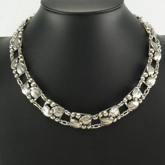 Vintage Danish Sterling Silver Leaf Chain Art Nouveau Necklace