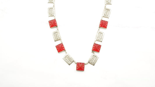 Vintage Modernist Sterling Silver Carved Glass Filigree Necklace