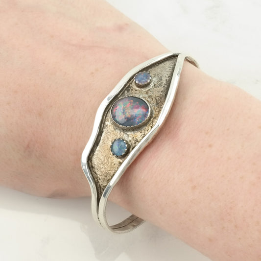 Vintage Sterling Silver Cuff Bracelet Purple Black Opal Triplet