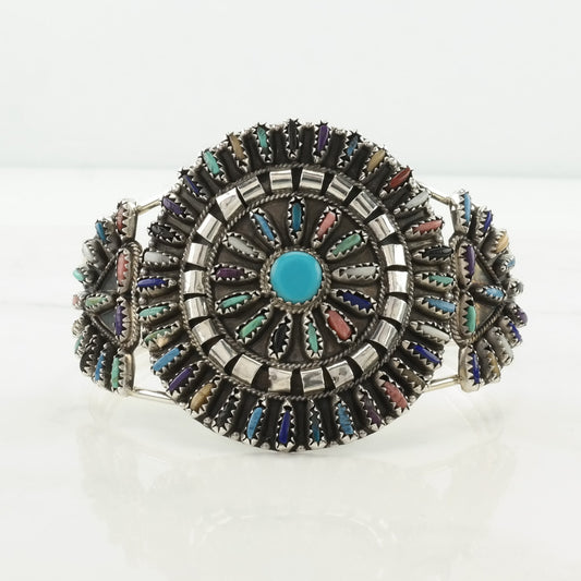 Zuni Sterling Silver Cuff Bracelet Green Blue Turquoise Petit Point