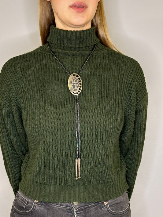 Vintage Hopi, Native American Sterling Silver Overlay Bear Claw Necklace