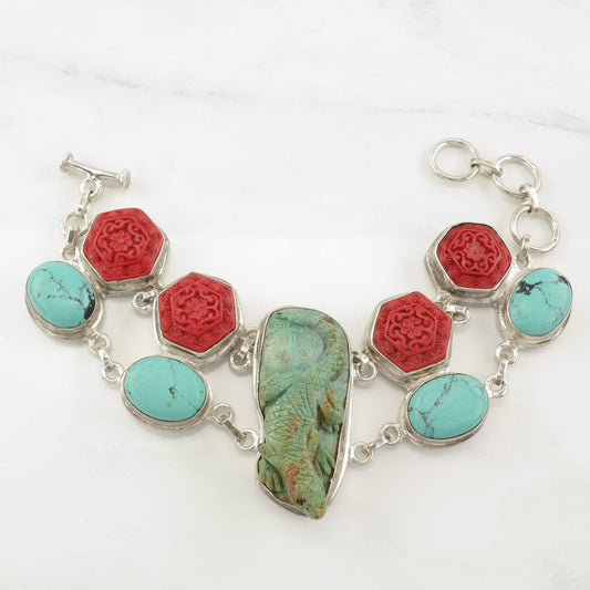 Carved Turquoise Bracelet Sterling Silver Lizard