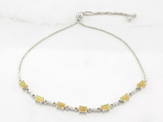 Sterling Silver Line Adjustable Bracelet Opal Bolo