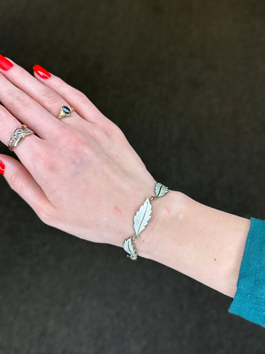Norway Sterling Silver Link Bracelet Enamel Leaf