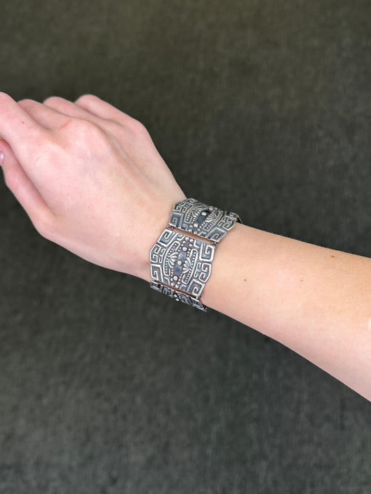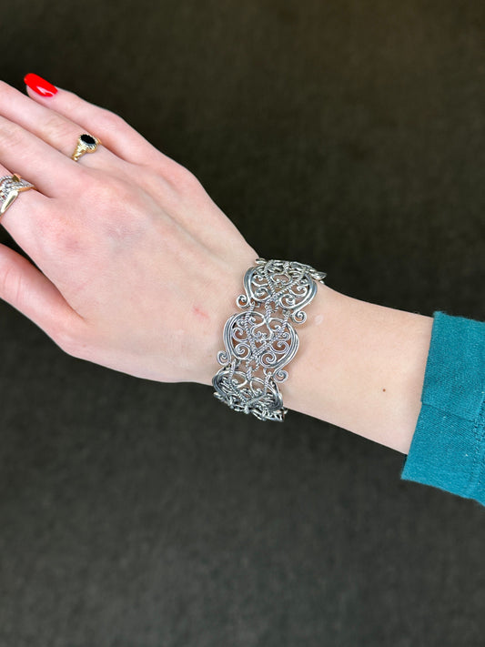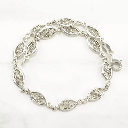 Archeological Revival Sterling Silver Link Filigree Bracelet