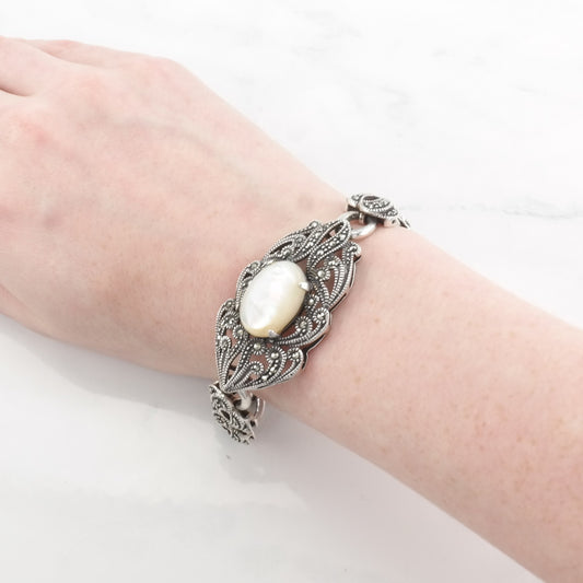 Art Deco Style Marcasite Bracelet Sterling Silver Link MOP