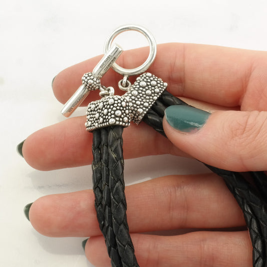 Michael Dawkins Sterling Silver Toggle Leather Bracelet Leather, Studded