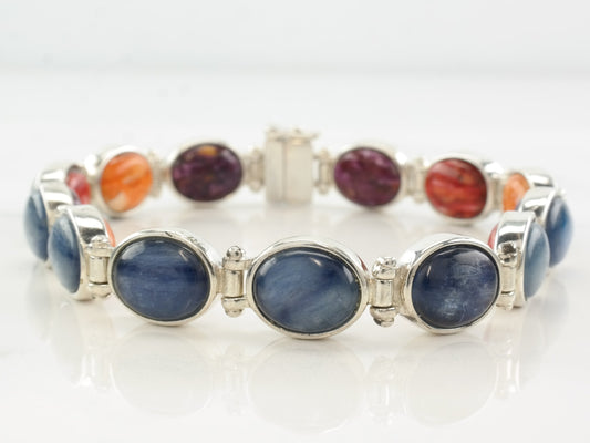 DRT Sterling Silver 6 3/4 Reversible Bracelet, Spiny Oyster, Iolite, Cabochon