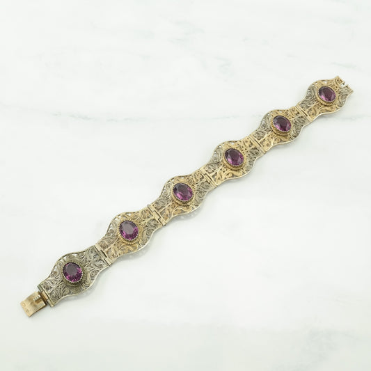 European Sterling Silver Link Bracelet Purple Amethyst Filigree