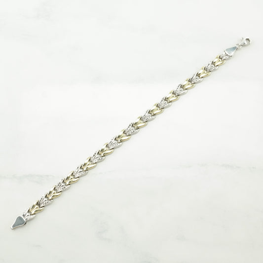 Sterling Silver Link Bracelet Alternating Links Gold Fill Accent