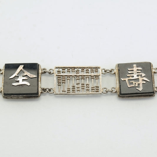 Sterling Silver Line Bracelet Black Onyx Chinese, Abacus