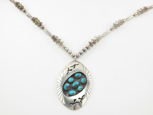 Vintage Native American Sterling Silver Turquoise Cluster Shadowbox Navajo Beads Necklace