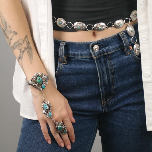 Single Row, Circle Turquoise Native American Cuff Bracelet