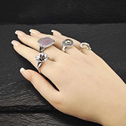 James Avery Floral, 18K Gold Accent Ring Sterling Silver Sz 8 1/2