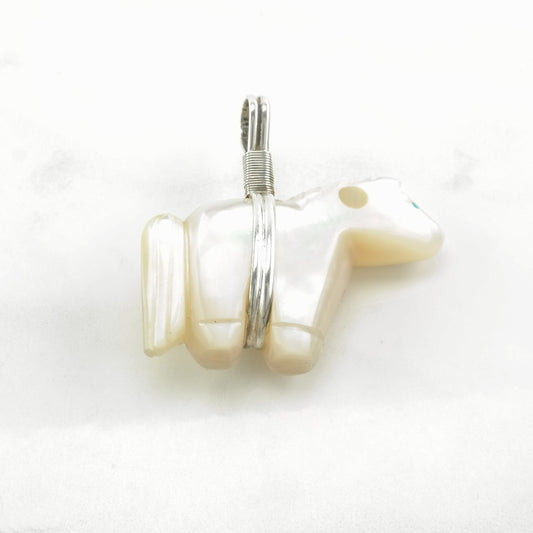 Vintage Native American MOP, Turquoise Eyes Carved, Horse Sterling Silver Pendant