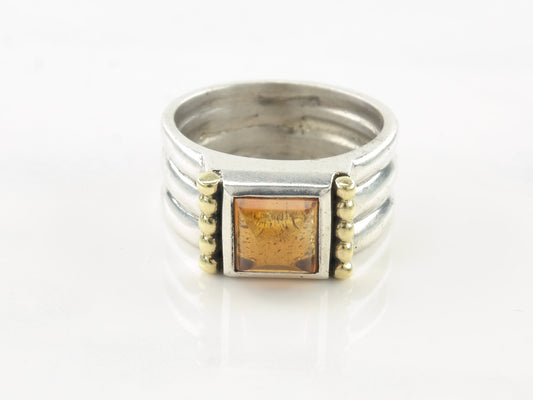 Vintage Modernist Silver Ring Orange Amber Sterling Size 8 1/4