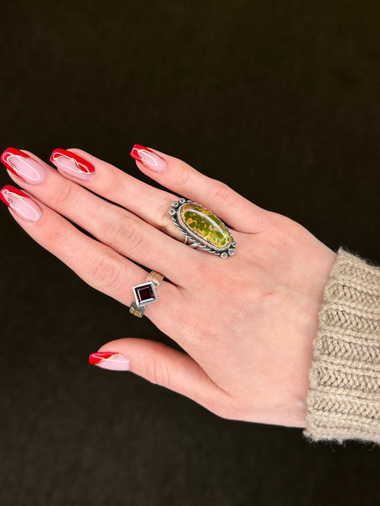 Sterling Silver Ring Spiderweb Turquoise Leaf Size 8