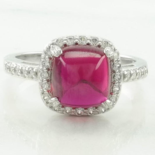 Vintage Sterling Silver Ring Created Ruby CZ Halo Pink Size 8 1/4