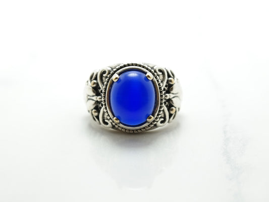 Vintage Artistic Silver Ring Blue Gem Abstract Sterling Blue Size 8